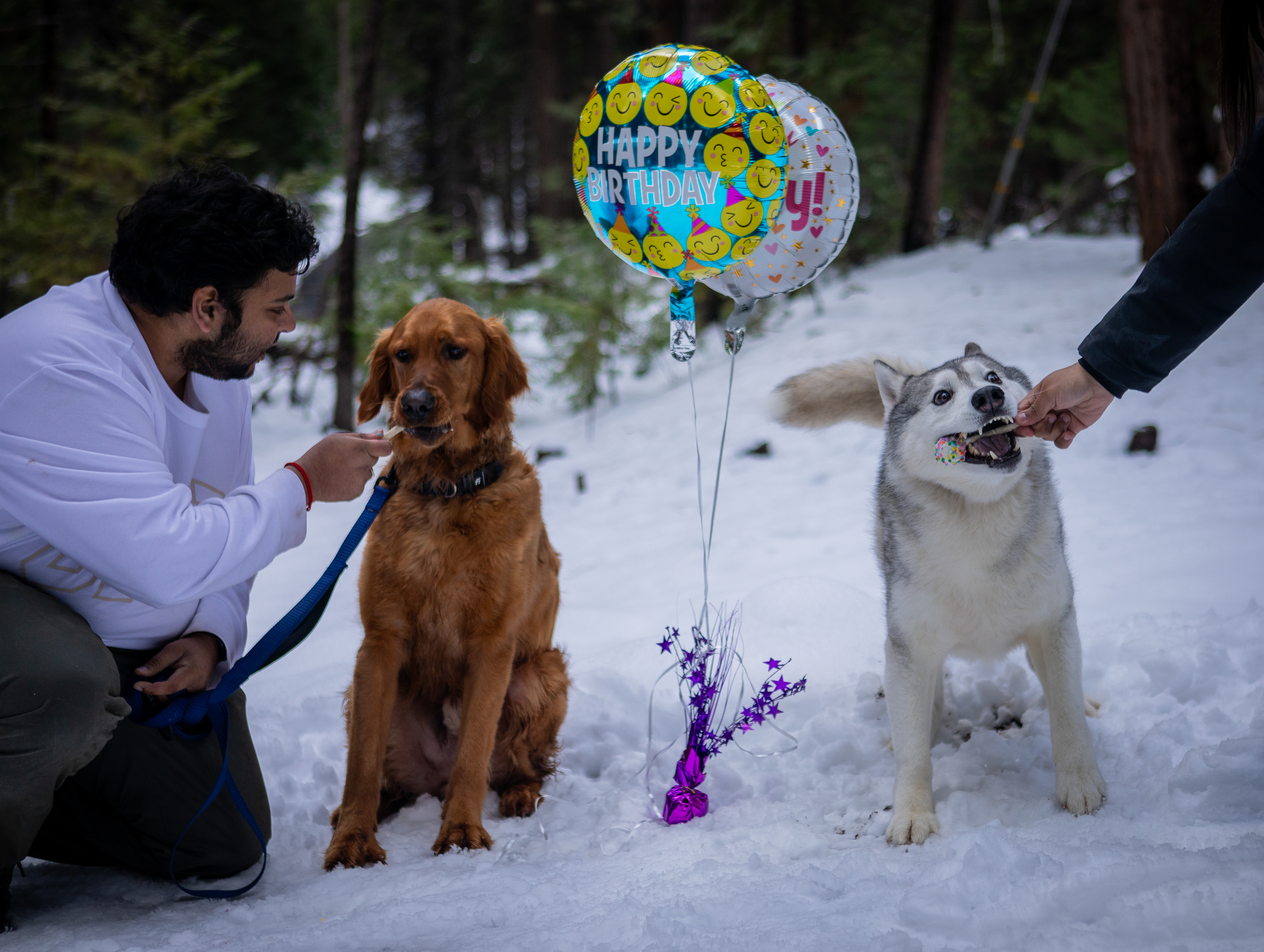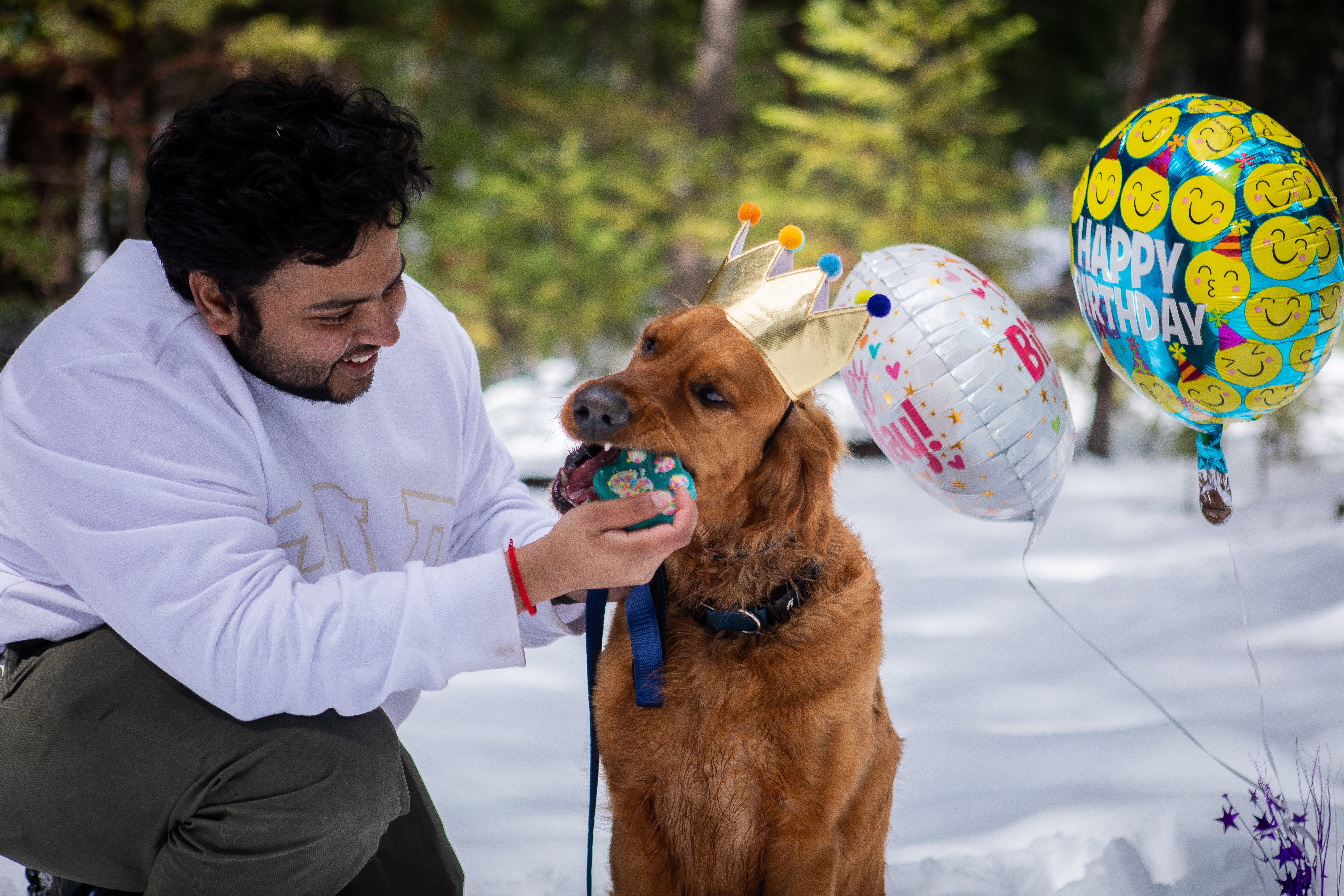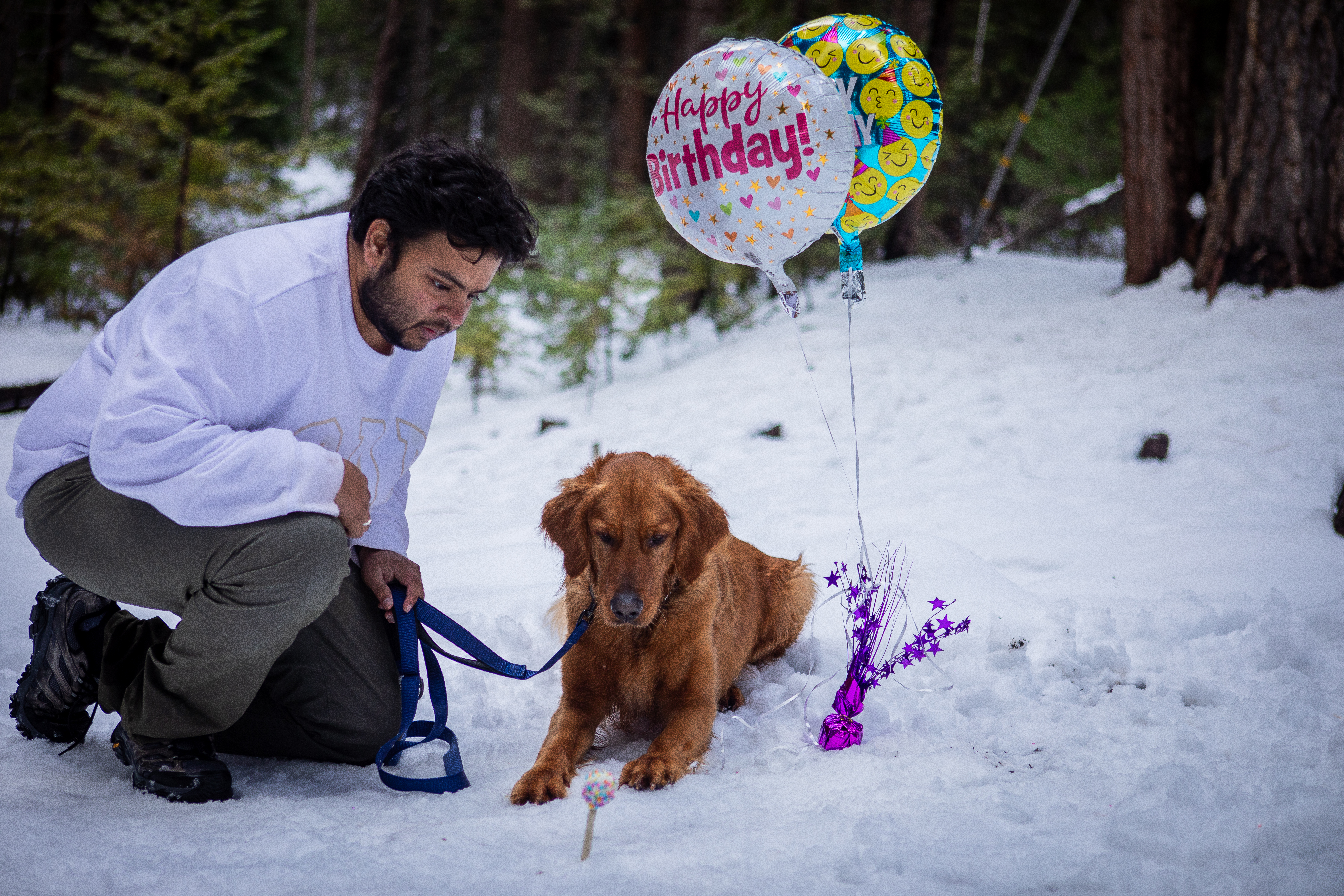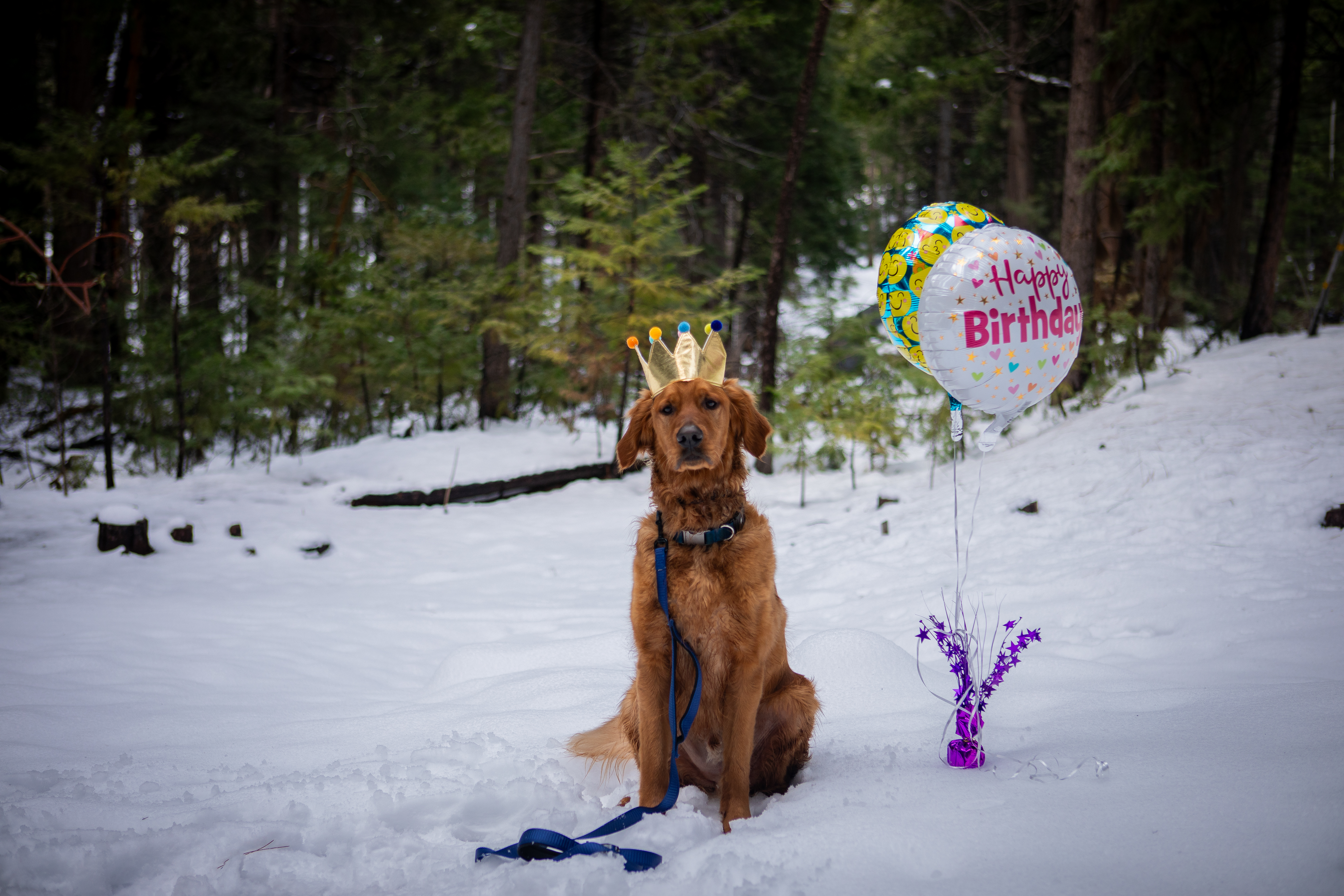 Fawkes is a handsome golden retriever and also one of our dog training clients. On April 7th, he turned 2 years old! I had the privilege of doing his birthday photoshoot when he and dog dad came to our property for a private lesson. We kept it simple with some small props and balloons, and Fawkes also got to enjoy some treats with Newt (our personal dog), as well as get a group photo with the other dogs that were also boarding with us for that week. Here are some of my favorite photos from the shoot!