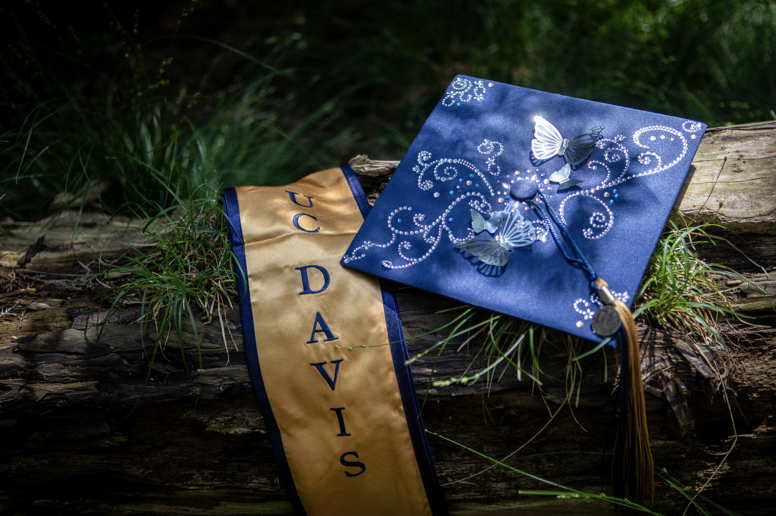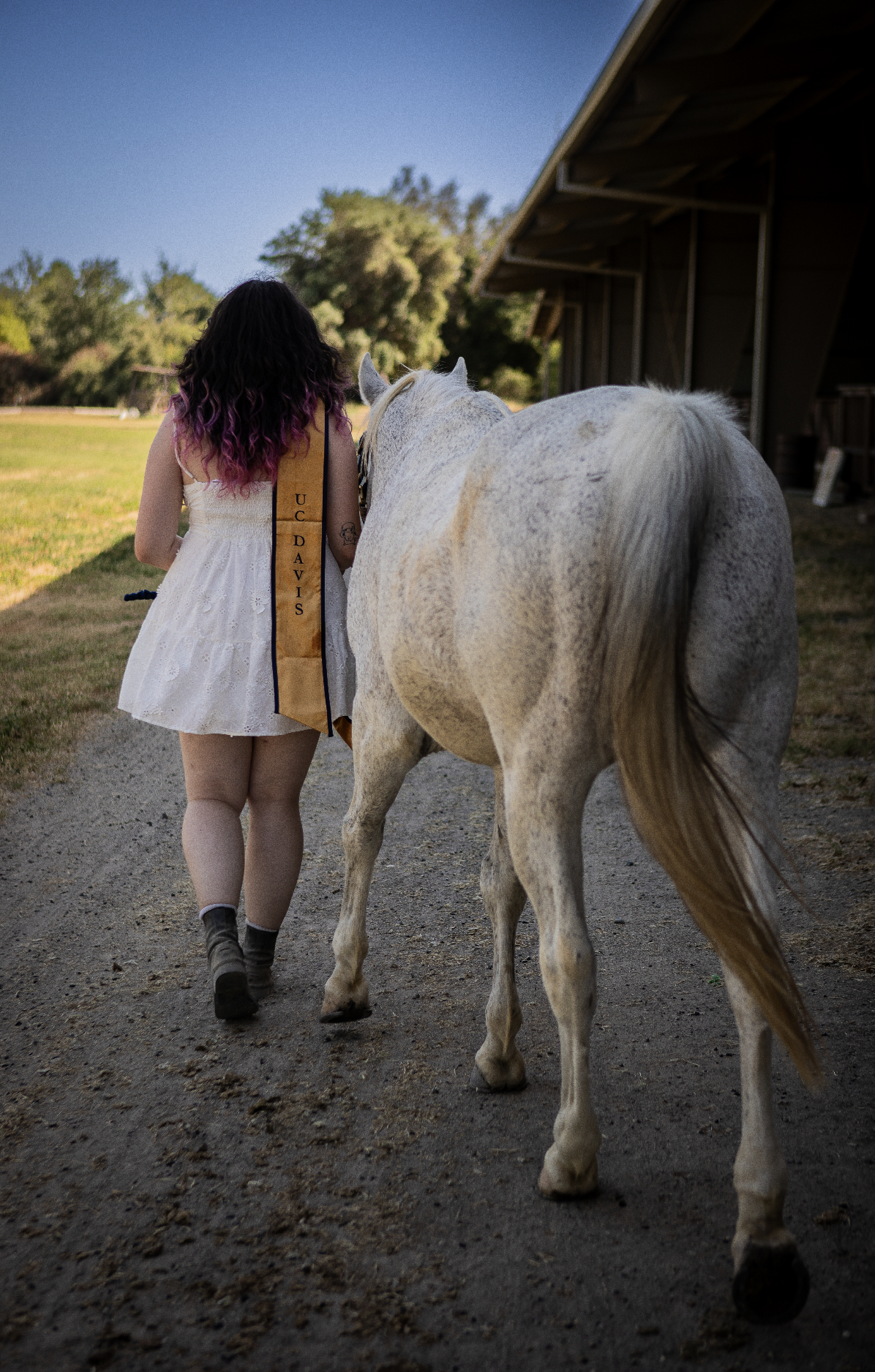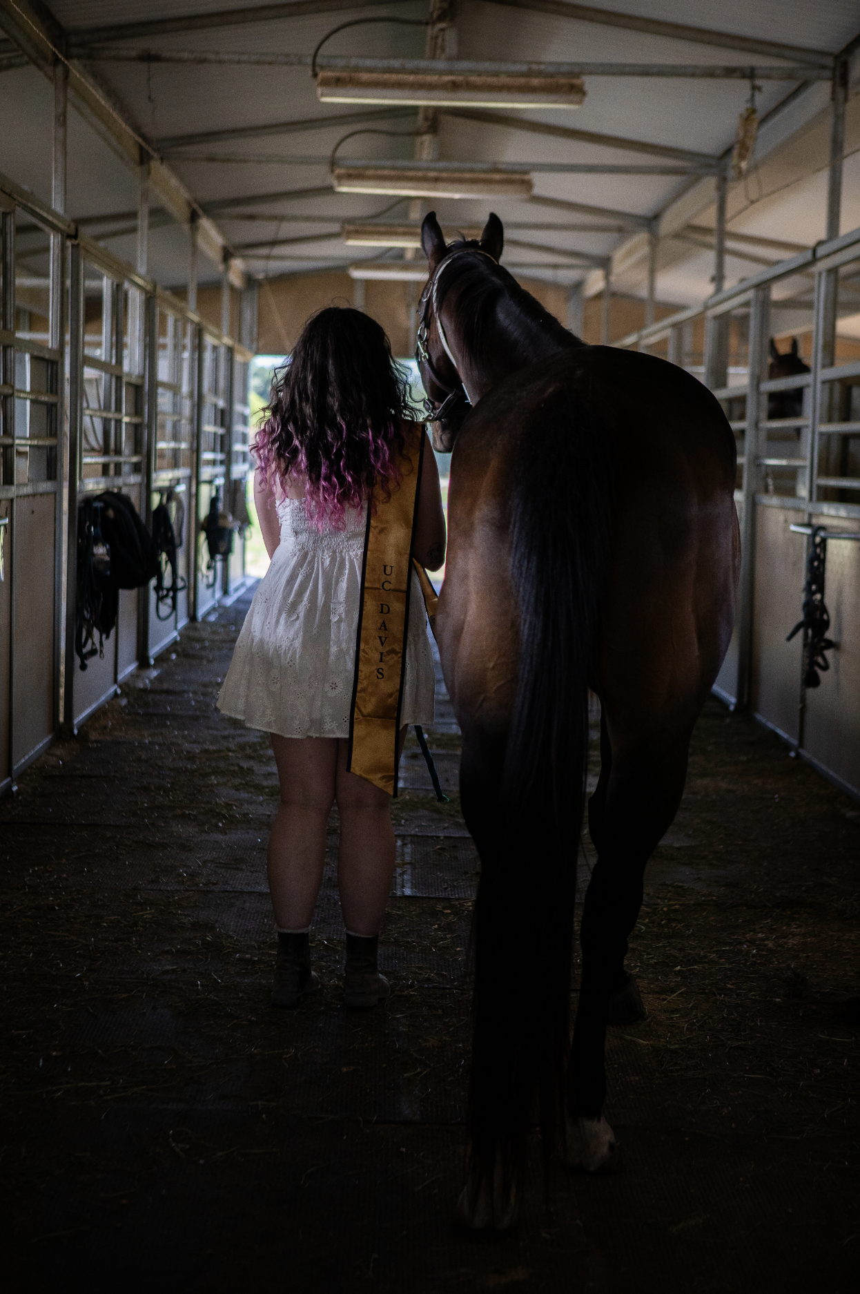 Savannah’s graduation shoot has to be the most unique photoshoot I’ve ever done. Over the span of three separate days, I captured shots of her not only by herself, but also of her interacting with some of the horses that participate in the Guardian Angel program at the UC Davis Equestrian Center, her dog Apollo, and Grasshopper the Swainson’s Hawk, who is one of the sweetest educational ambassadors at the California Raptor Center. In total, I captured easily over 100 photos, narrowed it down to 70 beautiful shots, and will be sharing my top 25 favorite photos in this blog post.